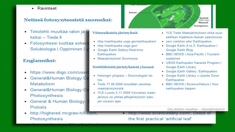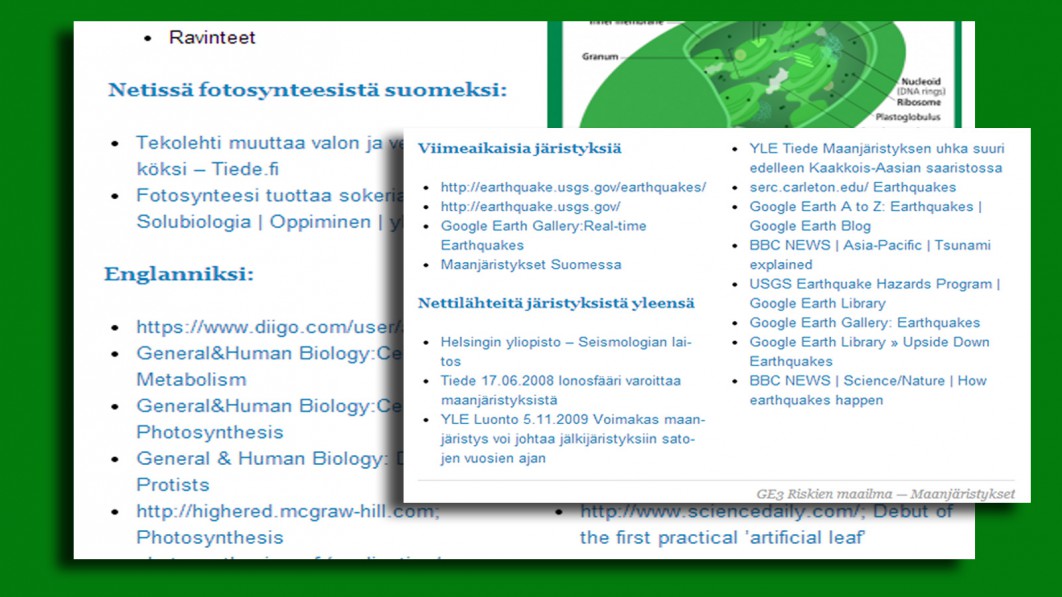 Nettilähteitä. Tässä kuvassa esimerkit bi2- ja ge3-kurssilta